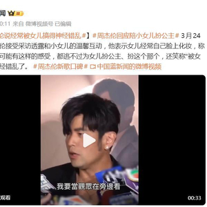 “被女儿搞得神经错乱了!”——谁能想到,华语乐坛天王周杰伦,私下竟会发出如此“甜蜜的抱怨”。据3月24日报道,他在采访中透露的与小女儿Jacinda的日常互动,瞬间戳中了无数老父亲的心。