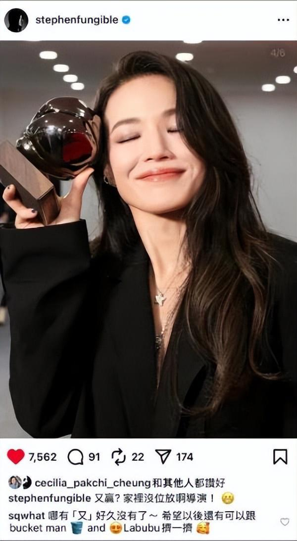 舒淇回应获奖没感谢冯德伦,等到年末再一次性谢完