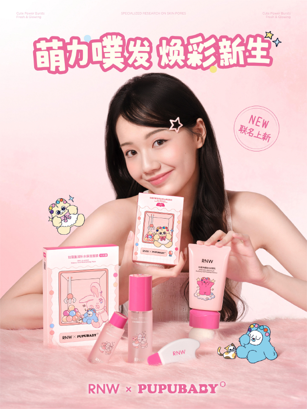 本次首发的 RNW× 奶噗噗联名系列,以 “萌力「噗」发,焕彩新生 —— 用柔软守住所有心事” 为营销主题,是品牌精准护肤与潮流美学的深度融合之作。该系列集结去黑头鼻贴、黑头水、抛光洗面奶、玻尿酸补水面膜等多款明星单品,其中RNW去黑头鼻贴全渠道累计热销超 7000 万盒,凭借硬核功效斩获市场高度认可。