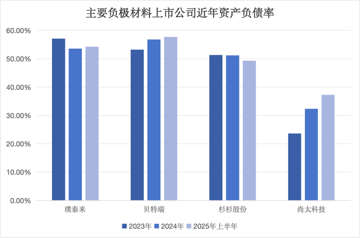 根据统计,璞泰来近年来的资产负债率在同类负极材料企业中属于偏高水平,且公司自上市以来的募集资金总额也较高。