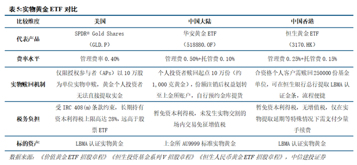 中信建投 | 香港黄金ETF相较国内有何特点?