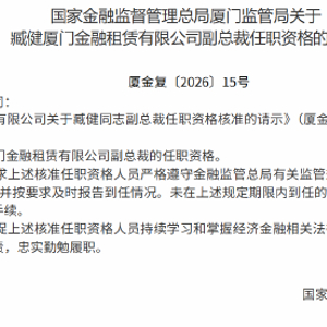 臧健获批出任厦门金租副总裁