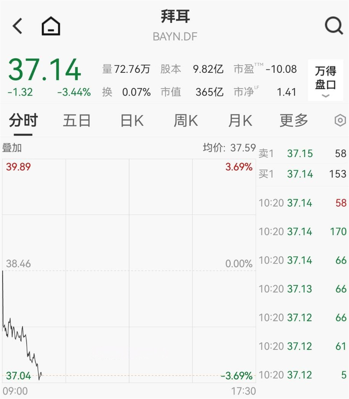 拜耳盘初跳水,跌超3%。此前有报道称,包容资本合伙公司(Inclusive Capital Partners)拟出售所持拜耳股份。