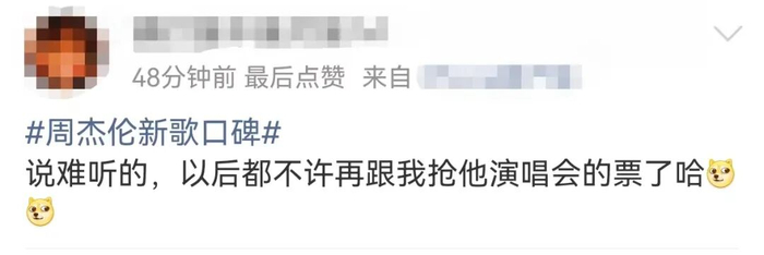 而与此同时,#难听#也登上热搜。有网友评论称:“新歌好难听,我还是听以前的吧”。也有人表示:“说难听的,以后都不许再跟我抢他演唱会的票了哈”。