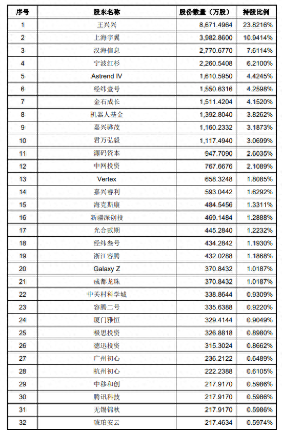 红杉中国为宇树科技的第三大股东。其与厦门雅恒为一致行动人,合计持有公司股权比例为7.1149%