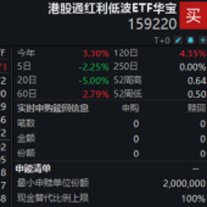 “抄底”港股优质高股息?港股通红利低波ETF华宝(159220)场内大涨1.67%,连续3日净流入超2000万元!