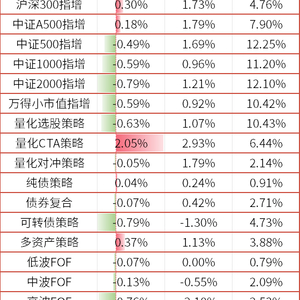 跟踪的量化CTA多数上涨,平均收益为2.05%: