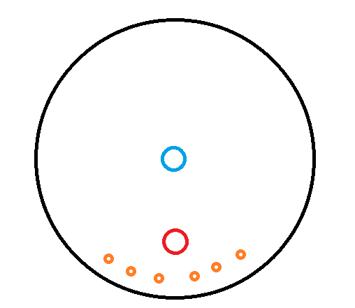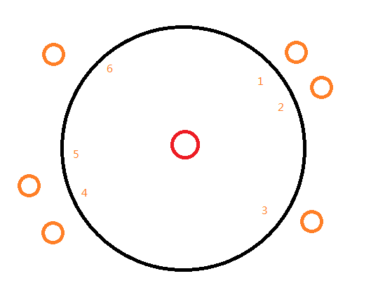 战斗场地示意,周围橙色圈是假山