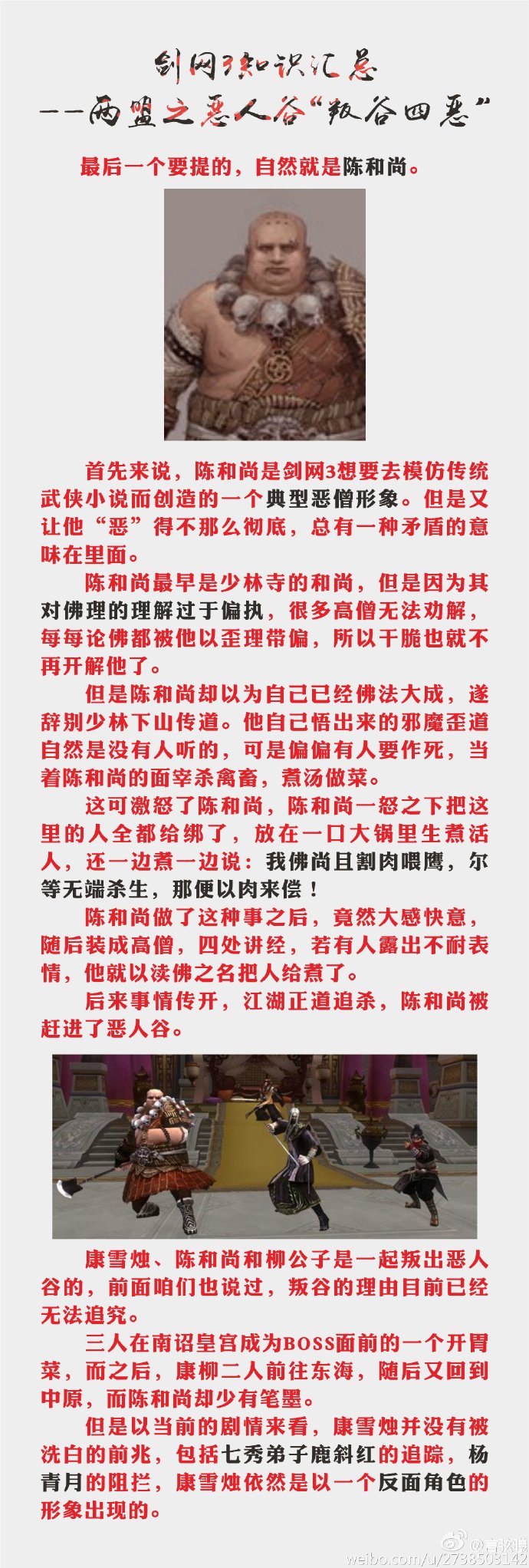 剑网3游戏知识科普之叛谷四恶 2016-12-05 11:20 新浪游戏 2 作者:言弦曦[微博] 本期的剑网3知识小讲堂依然是由我们的有爱玩家@言弦曦 来为大家讲述,大家快搬好小板凳吧! 扫描下方二维码关注新浪微博:新浪剑网3专区,不定期掉落各种福利哟! 更多最新最全的剑网3视频、美图、攻略、资讯就在新浪剑网三专区! 新浪剑网3玩家交流群:286934730 余下全文(1/2)