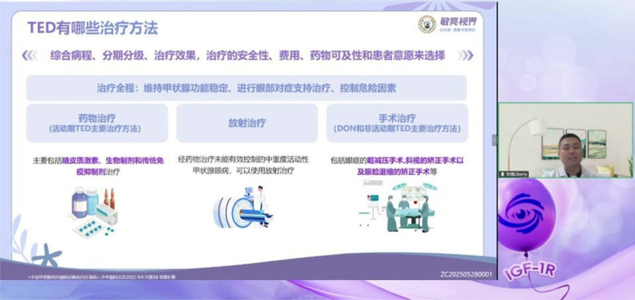 李博老师总结,需正确认知 TED 的疾病特点,重视甲功稳定和戒烟的基础治疗要求;替妥尤单抗可作为活动期 TED 一线治疗药物,对稳定期患者也有一定疗效,其相关不良反应多可在停药后缓解;全程需依托 MDT 多学科诊疗模式,患者需遵医嘱完成规范治疗,同时保持良好心态与生活习惯,以提升治疗效果和生活质量。
