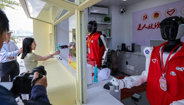 “哇!前海服务站的志愿者是机器人,可以提供日常咨询、便民服务!”“连前海的吃喝玩乐都能对答如流,也太厉害啦!”……在深圳前海石公园机器人志愿服务站,一群特殊的“志愿新伙伴”成为园区“顶流”,吸引了众多市民游客驻足打卡、互动合影。