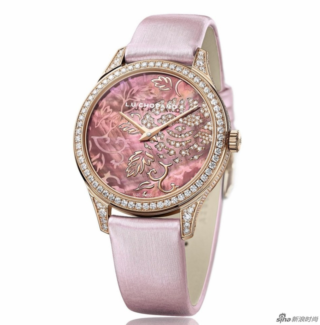 5/13 萧邦L.U.C XP 35毫米Esprit de Fleurier Peony腕表。表盘上的Fleurisanne雕纹工艺几近失传,平均要一千小时才能完成,表盘上华丽的牡花开预示美满富贵,全球限量8枚。
