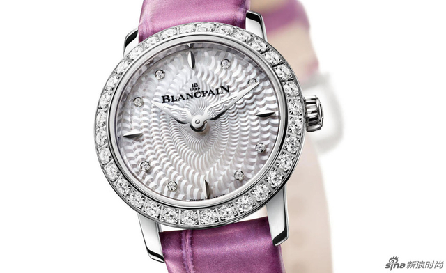 8/13 宝珀Ladybird六十周年纪念版腕表。表盘采用对比鲜明的亮纹装饰,如层层掩映的树叶极致精美,镶有32颗美钻的表圈奢华却不张扬,与小表径表盘的玲珑美感相得益彰。