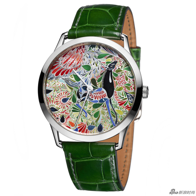 12/13 爱马仕珍珠母贝微绘工艺腕表。表盘图案来自平面设计师 Laetitia Bianchi 为爱马仕设计的真丝围巾,以珍珠母贝为画布,用细腻笔触在表盘上绘出繁花似锦,全球限量6只。