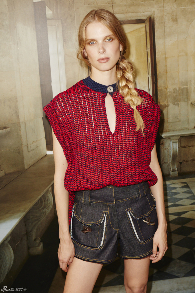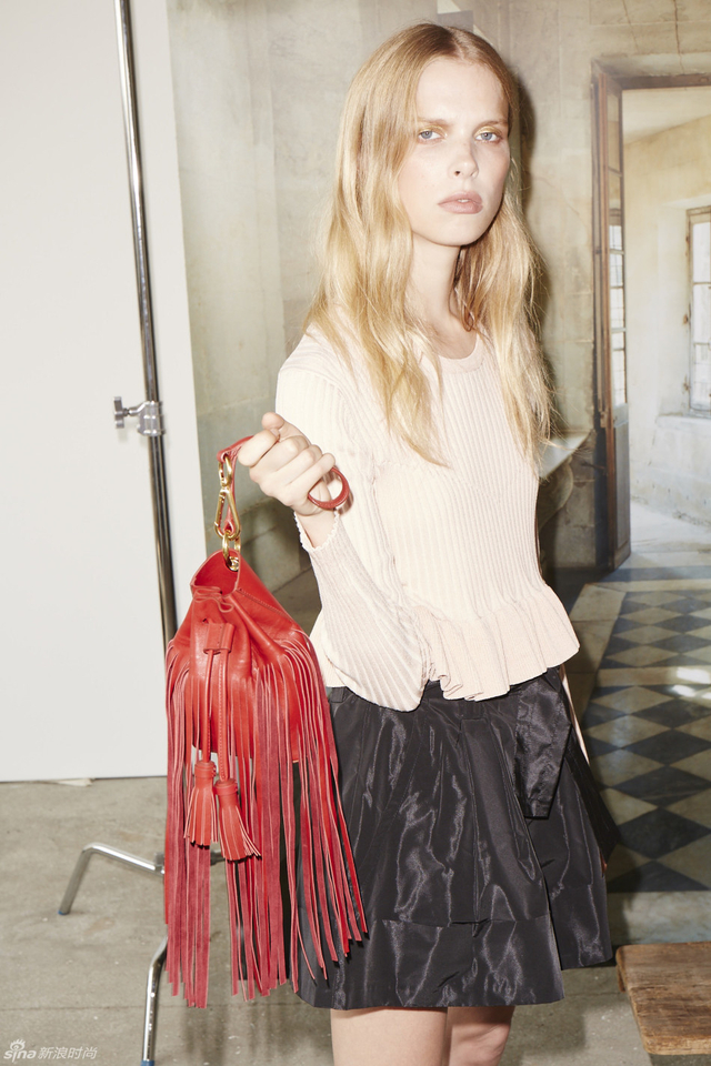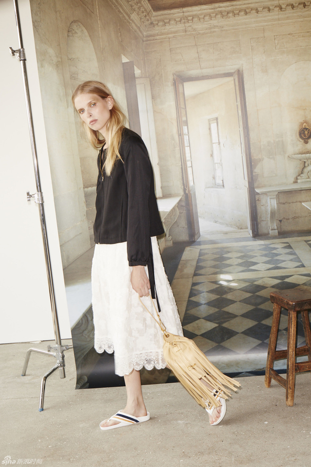 15/20 Derek Lam 10 Crosby 2016春夏系列以摩尔建筑风格的剪裁廓形,饱和的色彩和民族样式的印花为主,颇具现代感的极简设计被减少,取而代之的则是流苏,镂空小孔,荷叶边等女性化元素,复古的阔腿裤和层叠的蕾丝花边都更具女性气质。
