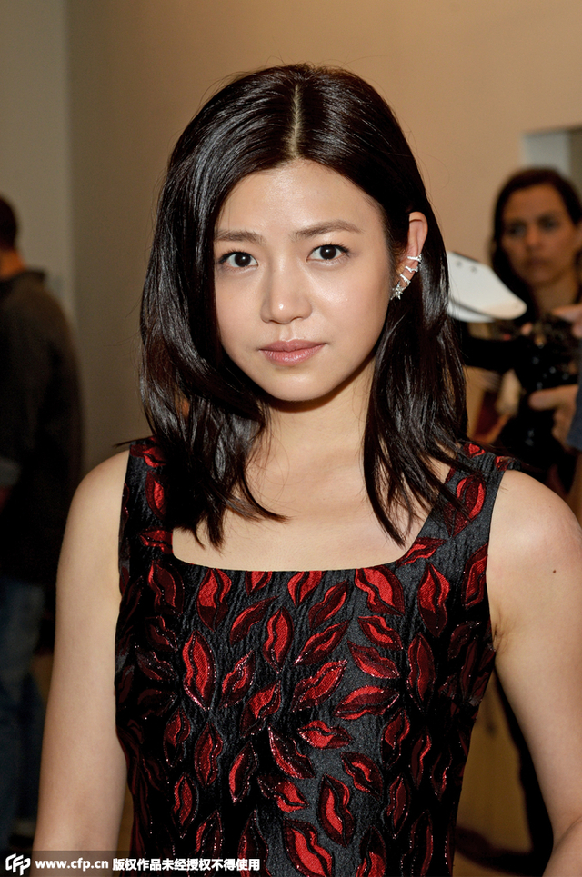 5/6 纽约,当地时间9月13日,2016纽约春夏时装周:Diane Von Furstenberg 明星观秀。陈妍希身穿DVF红唇印花礼服,脚踩银色尖头鞋。
