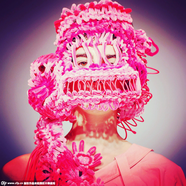 1/26 所谓设计师 ,不光是要在服装上做功课,发型,彩妆,饰品都要操心,就连头套都要不得不博人眼球。后台模特也是不闲着,各种伸舌搞怪,时装周真是欢乐的海洋。