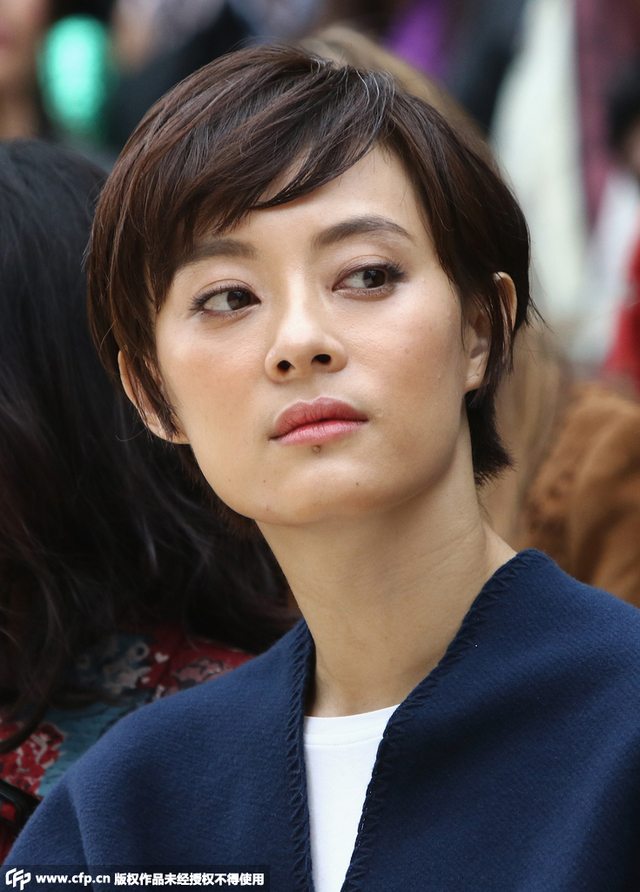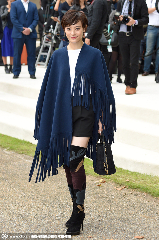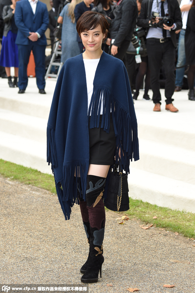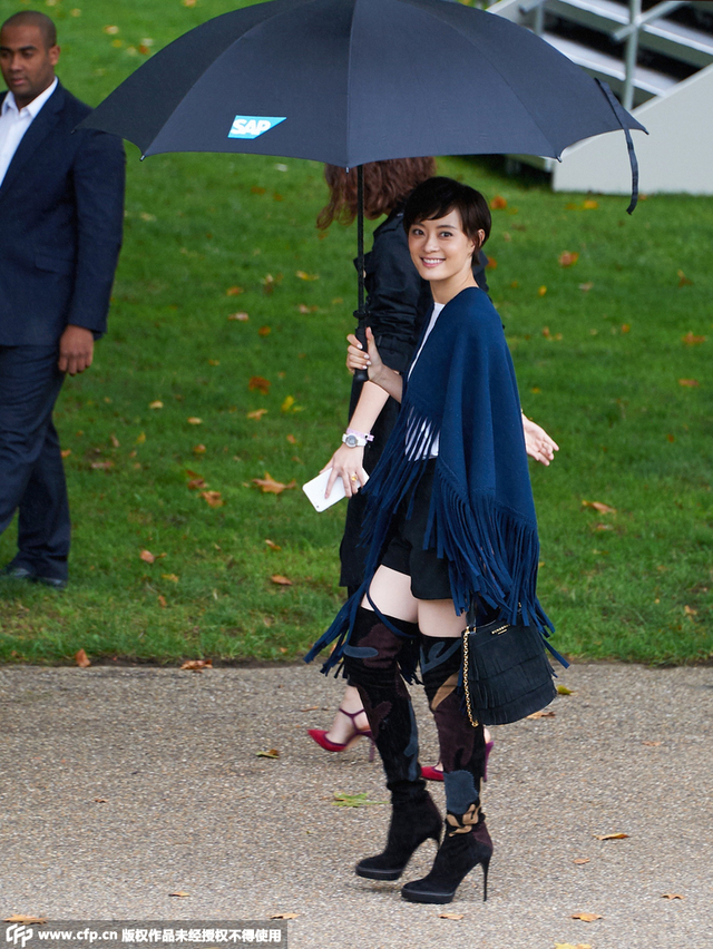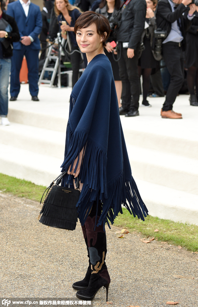 孙俪Burberry流苏披肩看秀 直显娘娘强大气场
