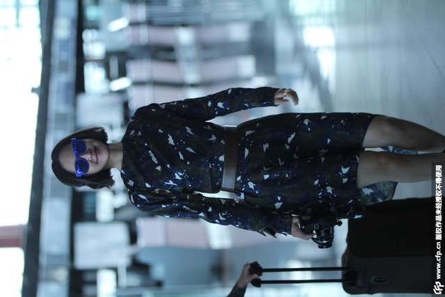 2/6 2015年9月23日讯,北京,23日,2016米兰春夏时装周:张歆艺现身首都机场,她身穿碎花连衣裙,裙摆飘逸,女神范儿十足。见有镜头,张歆艺对镜展笑挥手,尽显亲民一面。
