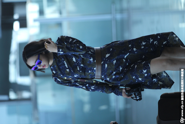 3/6 2015年9月23日讯,北京,23日,2016米兰春夏时装周:张歆艺现身首都机场,她身穿碎花连衣裙,裙摆飘逸,女神范儿十足。见有镜头,张歆艺对镜展笑挥手,尽显亲民一面。