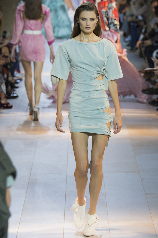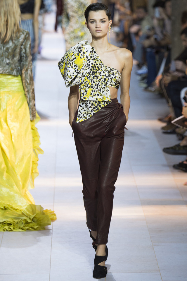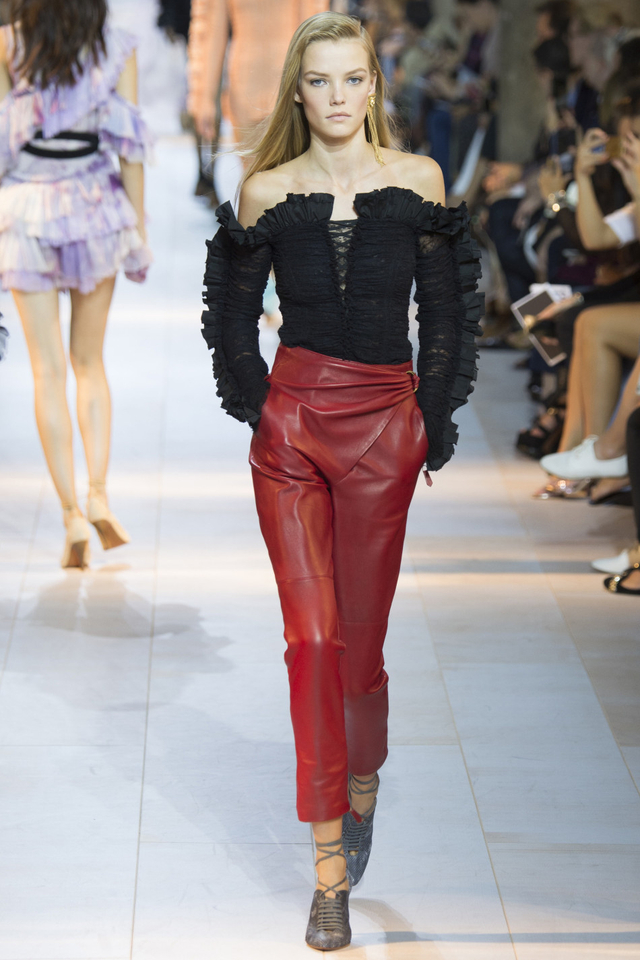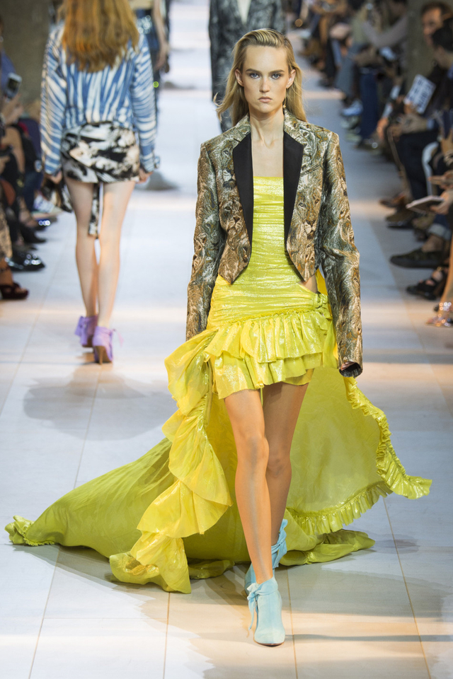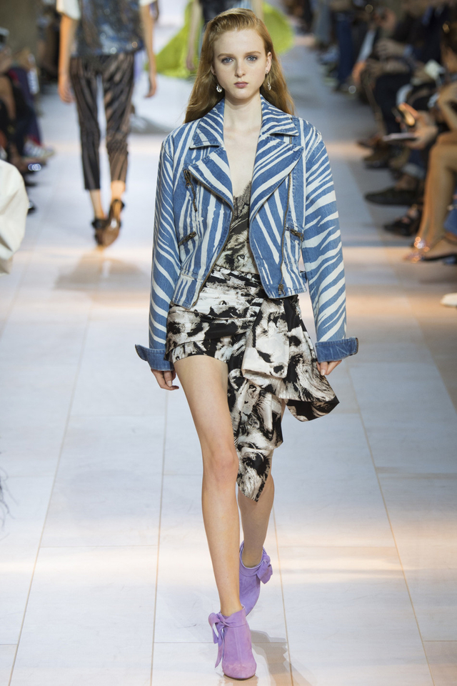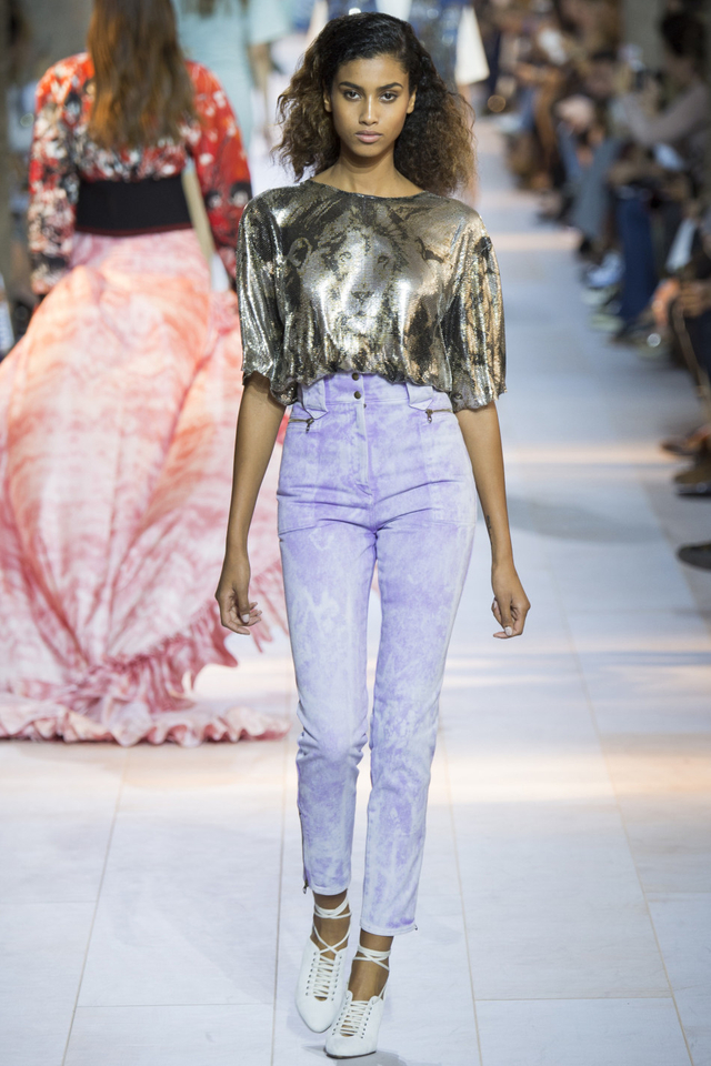 28/51 设计师Peter Dundas回归Roberto Cavalli交上的第一份答卷,这一季主要呈现80年代街头风格,日装以随性的工装马甲、夹克为主,晚装则大走性感路线,镂空蕾丝鸡尾酒裙有几分爵士时代的风味。