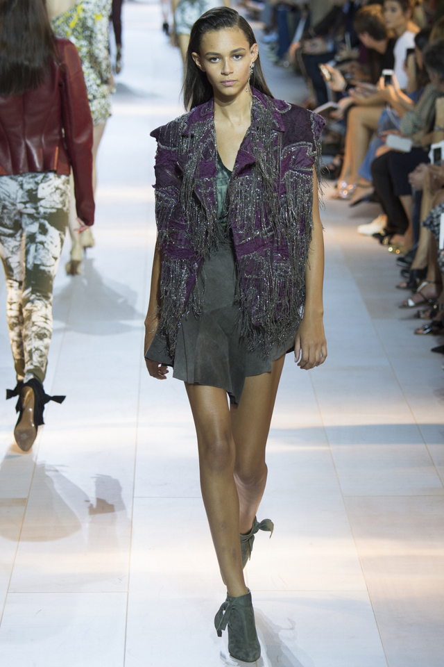 14/51 设计师Peter Dundas回归Roberto Cavalli交上的第一份答卷,这一季主要呈现80年代街头风格,日装以随性的工装马甲、夹克为主,晚装则大走性感路线,镂空蕾丝鸡尾酒裙有几分爵士时代的风味。