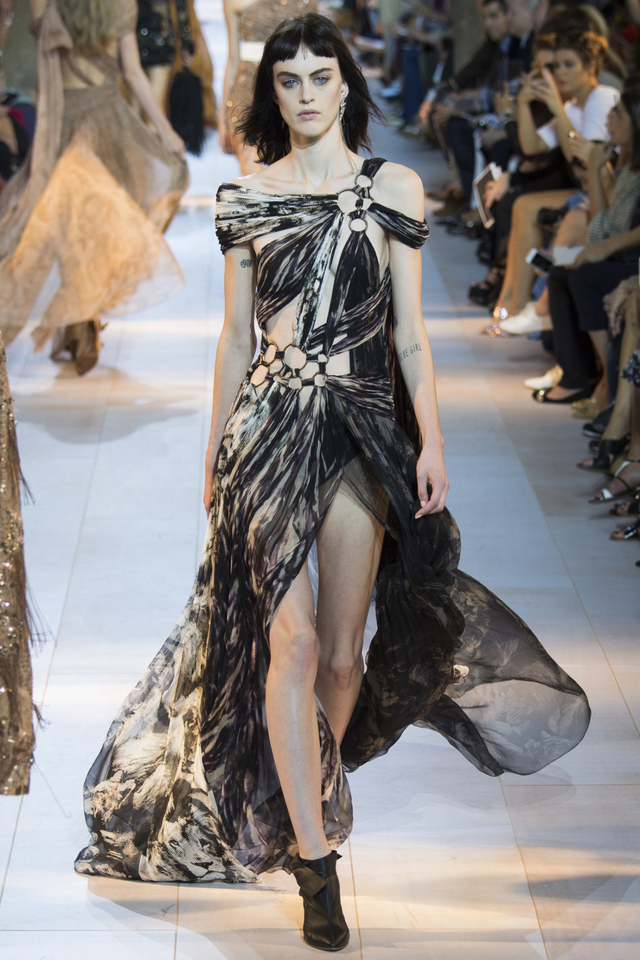 27/51 设计师Peter Dundas回归Roberto Cavalli交上的第一份答卷,这一季主要呈现80年代街头风格,日装以随性的工装马甲、夹克为主,晚装则大走性感路线,镂空蕾丝鸡尾酒裙有几分爵士时代的风味。