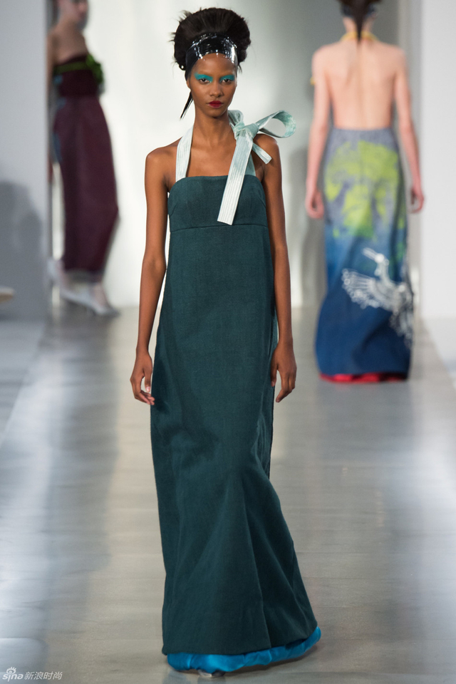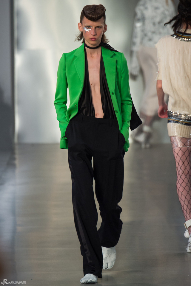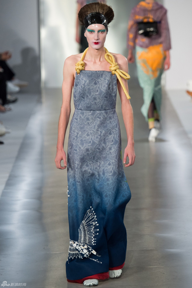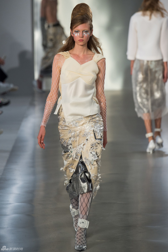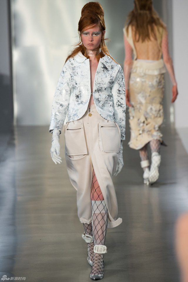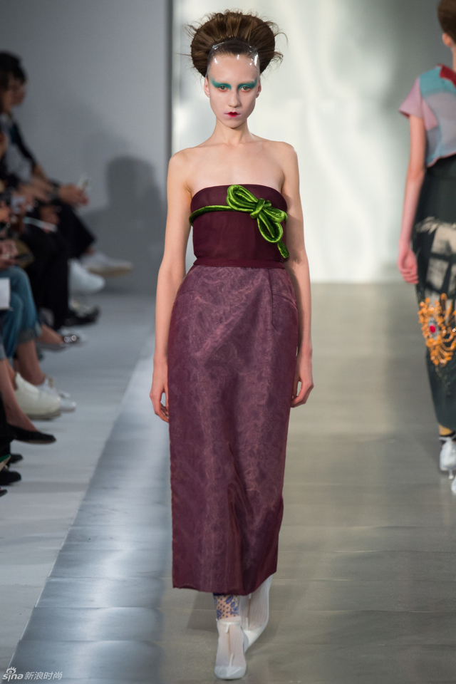 14/33 头裹塑料袋和腿缠保鲜膜的姑娘,告诉你秋冬不减肥春夏徒伤悲。本季Maison Margiela沿用了John Galliano偏爱的东瀛风,和服式腰带在胸前或腰间,东方美学得到了二次解读。