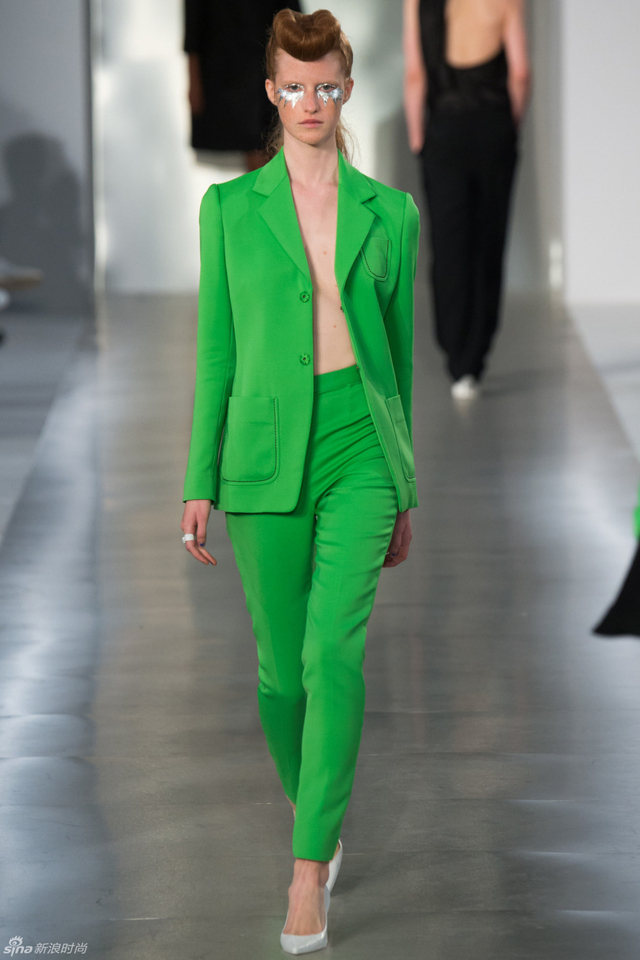 4/33 头裹塑料袋和腿缠保鲜膜的姑娘,告诉你秋冬不减肥春夏徒伤悲。本季Maison Margiela沿用了John Galliano偏爱的东瀛风,和服式腰带在胸前或腰间,东方美学得到了二次解读。