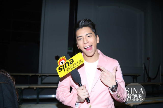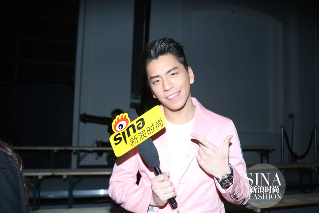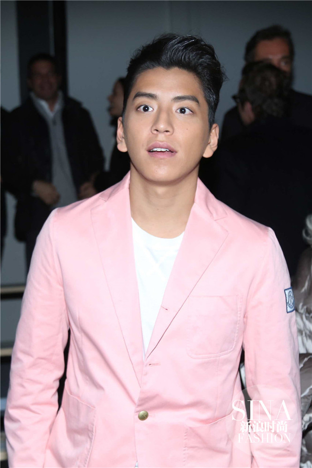 7/7 小鲜肉王大陆一身“粉嫩”装扮助阵Moncler Gamme Bleu米兰男装周秀场。(摄影:@Mr于川 )