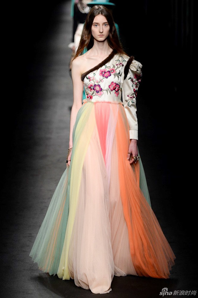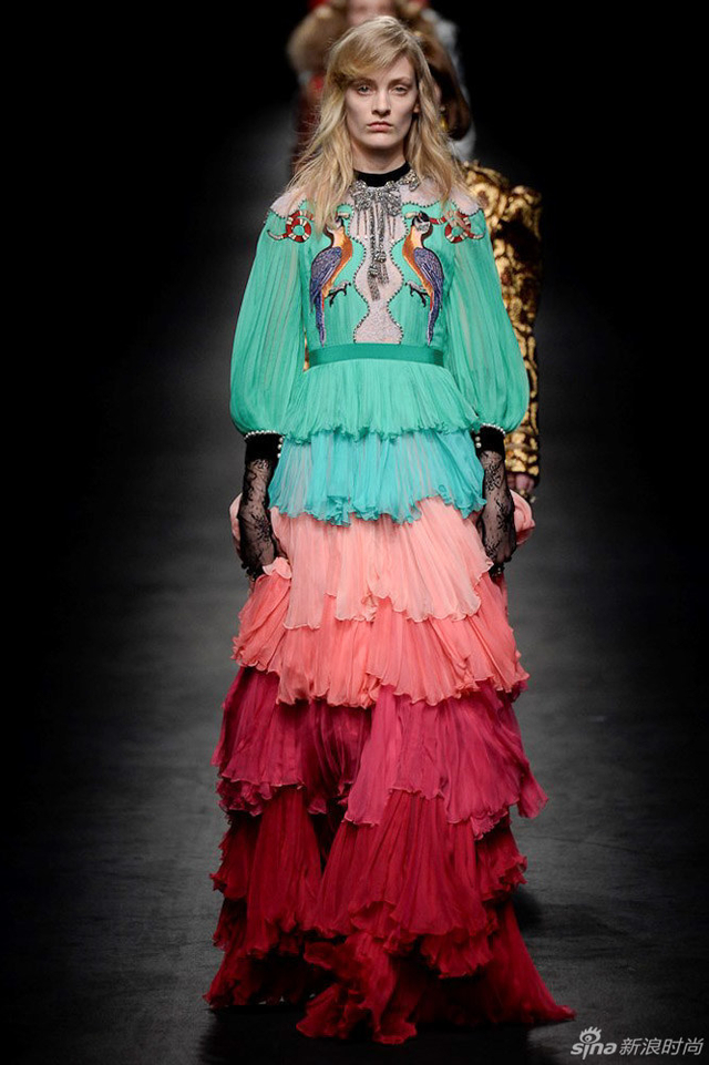 71/72 GUCCI 2016秋冬女装系列从植物的生长中获取灵感,每件服装都描绘出截然迥异的符号系统,有如“块茎思维”一般不断将各种元素串根式重生,并交织在一起,盘错蔓延,产生无以伦比的多样性。
