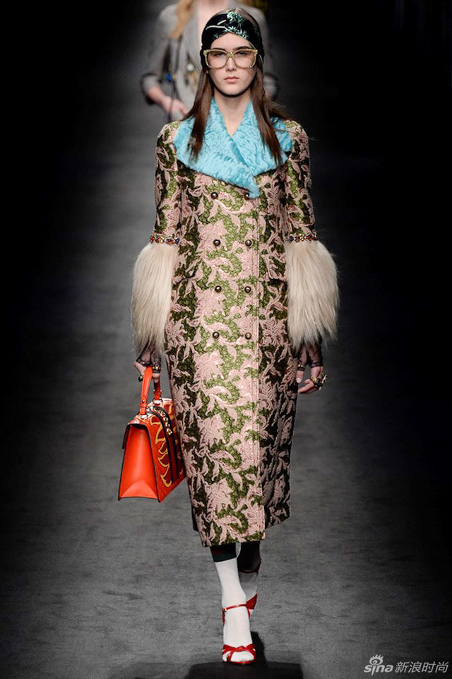 32/72 GUCCI 2016秋冬女装系列从植物的生长中获取灵感,每件服装都描绘出截然迥异的符号系统,有如“块茎思维”一般不断将各种元素串根式重生,并交织在一起,盘错蔓延,产生无以伦比的多样性。