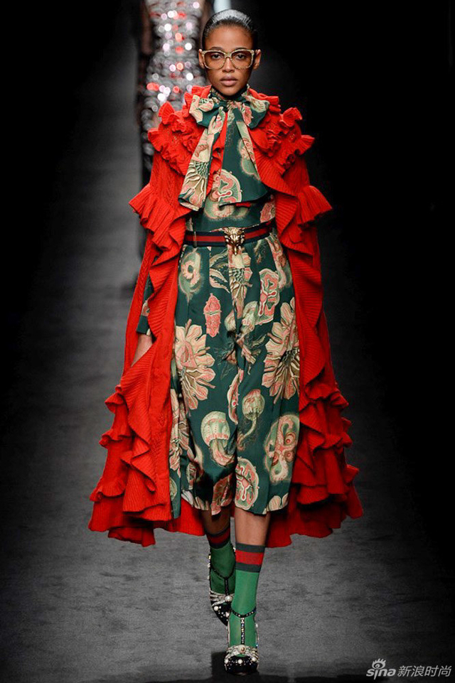 21/72 GUCCI 2016秋冬女装系列从植物的生长中获取灵感,每件服装都描绘出截然迥异的符号系统,有如“块茎思维”一般不断将各种元素串根式重生,并交织在一起,盘错蔓延,产生无以伦比的多样性。