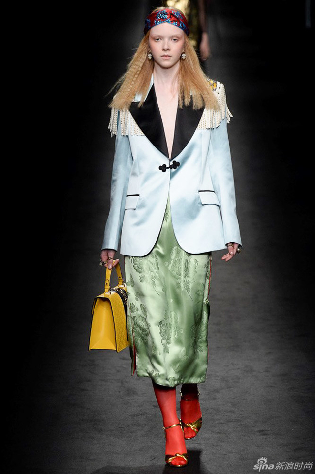 44/72 GUCCI 2016秋冬女装系列从植物的生长中获取灵感,每件服装都描绘出截然迥异的符号系统,有如“块茎思维”一般不断将各种元素串根式重生,并交织在一起,盘错蔓延,产生无以伦比的多样性。