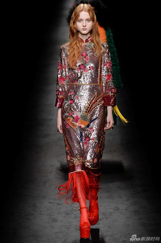 33/72 GUCCI 2016秋冬女装系列从植物的生长中获取灵感,每件服装都描绘出截然迥异的符号系统,有如“块茎思维”一般不断将各种元素串根式重生,并交织在一起,盘错蔓延,产生无以伦比的多样性。