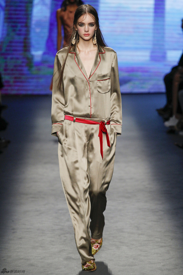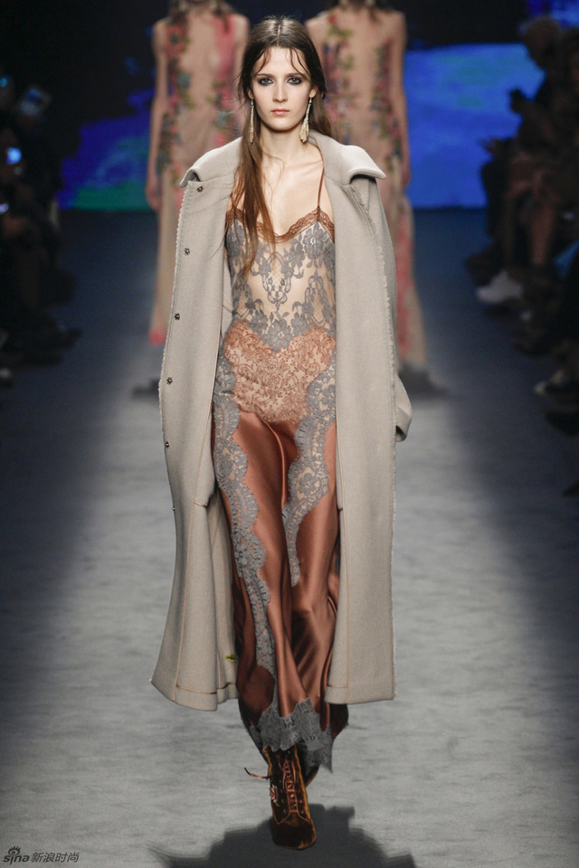 46/61 这简直就是一场刺绣与透视的绝妙盛宴,柔软的绸缎与轻盈的透视蕾丝演奏出令人难以忘怀的古典乐章,夹克混合了男装外套和翻领披肩的设计,又为系列注入了几分惊喜。