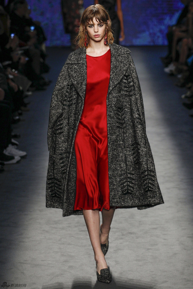 45/61 这简直就是一场刺绣与透视的绝妙盛宴,柔软的绸缎与轻盈的透视蕾丝演奏出令人难以忘怀的古典乐章,夹克混合了男装外套和翻领披肩的设计,又为系列注入了几分惊喜。