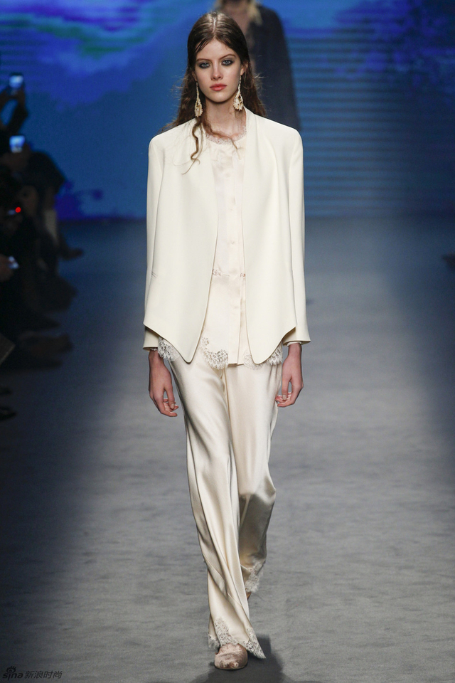 14/61 这简直就是一场刺绣与透视的绝妙盛宴,柔软的绸缎与轻盈的透视蕾丝演奏出令人难以忘怀的古典乐章,夹克混合了男装外套和翻领披肩的设计,又为系列注入了几分惊喜。