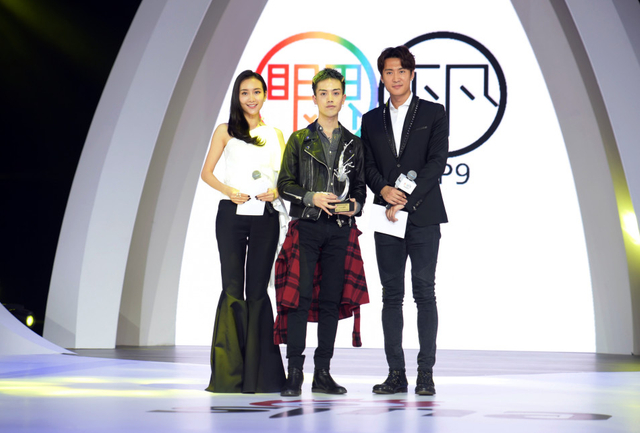 3/19 2016年4月29日晚,2016中国时尚自媒体大赏在北京751D·PARK举行,现场发布了“2016中国时尚自媒体百强价值榜”,并颁布19项大奖。图为最具时尚潜力明星奖:尹正、魏大勋