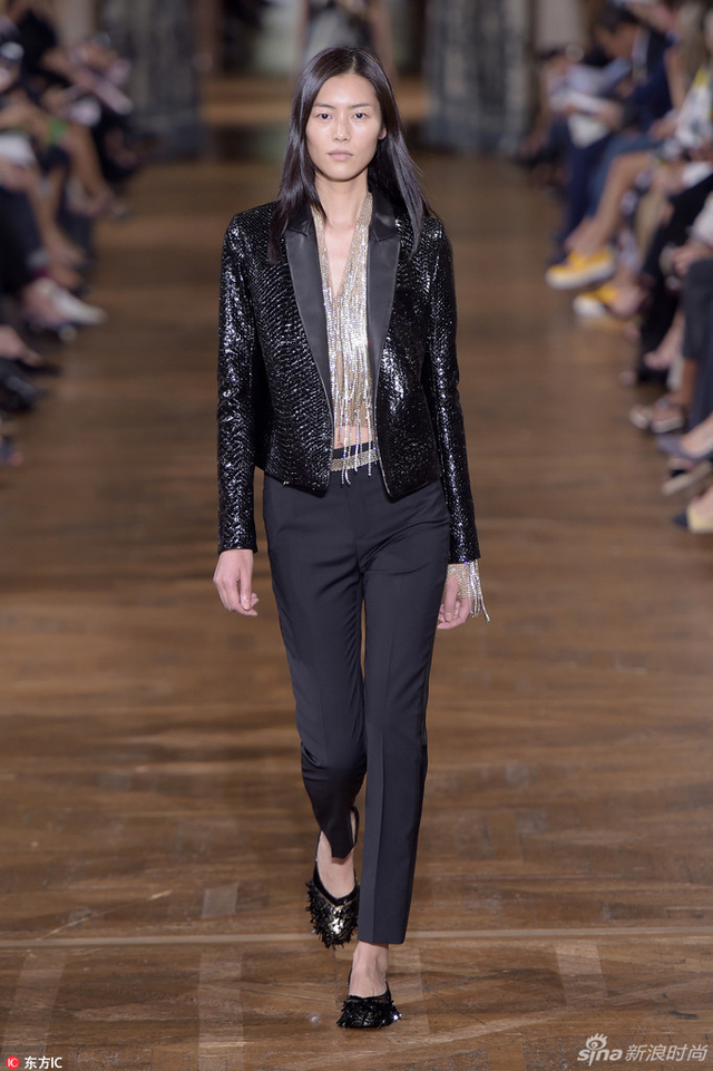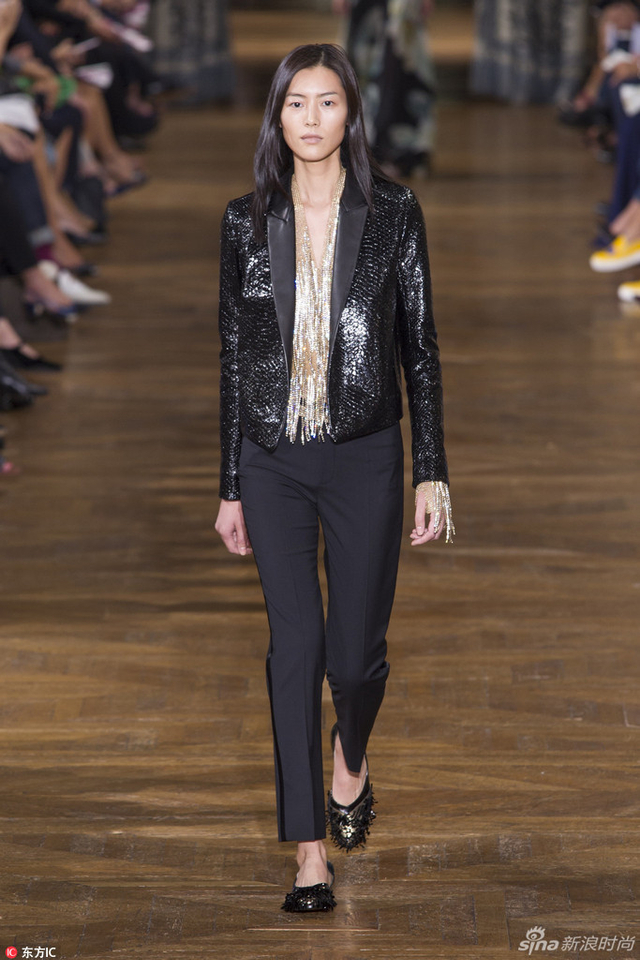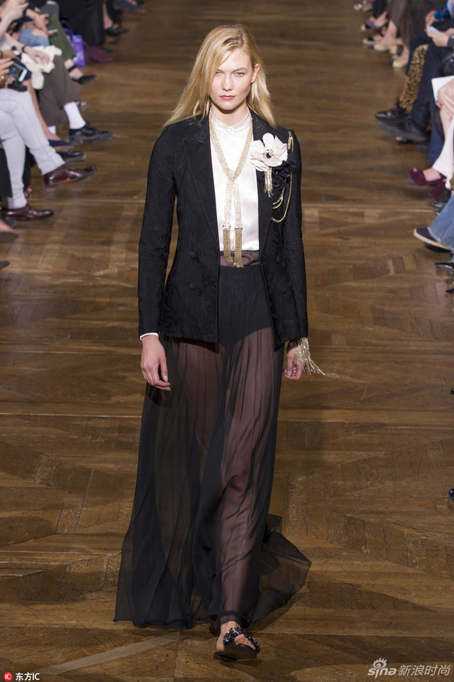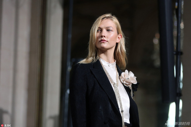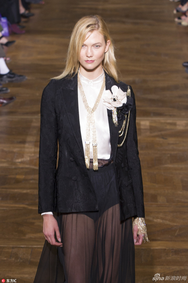 11/14 当地时间9月28日,设计师Bouchra Jarrar在Lanvin的首场大秀在巴黎举行,超模阵容除了“表姐”刘雯,“KK”Karlie Kloss也压轴亮相。