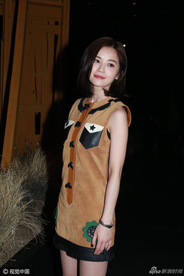 4/14 当地时间2月14日,Coach 2017秋冬大秀在纽约举行,阿Sa蔡卓妍麂皮连身短裙搭配铆钉皮衣,外加流苏手袋的造型,酷酷亮相。