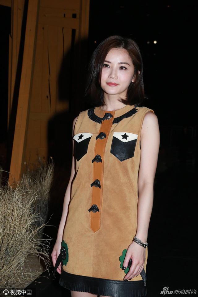 10/14 当地时间2月14日,Coach 2017秋冬大秀在纽约举行,阿Sa蔡卓妍麂皮连身短裙搭配铆钉皮衣,外加流苏手袋的造型,酷酷亮相。