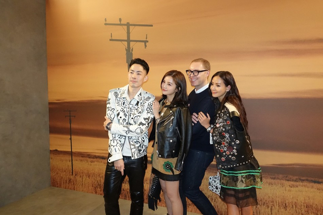 14/14 当地时间2月14日,Coach 2017秋冬大秀在纽约举行,阿Sa蔡卓妍麂皮连身短裙搭配铆钉皮衣,外加流苏手袋的造型,酷酷亮相。
