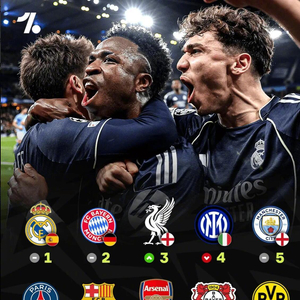 欧足联俱乐部系数排名出炉,皇马拜仁利物浦居前三