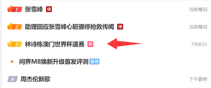 林诗栋澳门世界杯退赛也登上热搜第三的位置。球迷们应该都知道林诗栋在WTT新加坡大满贯后就进入了养伤状态,WTT重庆冠军赛他也退赛了。