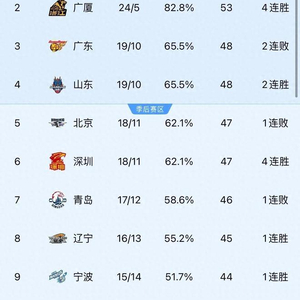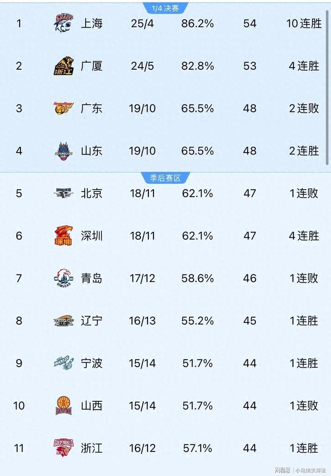 随着广东惨败上海、四川29连败,狂野CBA最新排名如下!