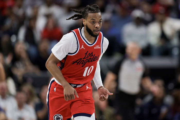直播吧3月24日讯 NBA常规赛,快船129-96大胜雄鹿。赛后,快船球员加兰接受了采访。