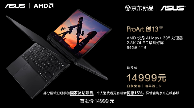 ProArt创13 2026升级搭载最新AMD锐龙AI Max+ 395处理器,采用“Zen5”CPU架构,16核心32线程设计,最高主频可达5.1GHz,集成AMD Radeon 8060S核显,基于RDNA3.5架构,拥有40组计算单元,官方称其性能媲美移动端独立显卡,并可实现显存的灵活分配。搭配至高64GB LPDDR5X 8000MT/s内存,可本地运行超大规模LLM模型、处理4K视频剪辑或复杂3D渲染任务,还有1TB PCIe 4.0 SSD固态硬盘,能够随心存储本地AI创作任务及项目工程文件。