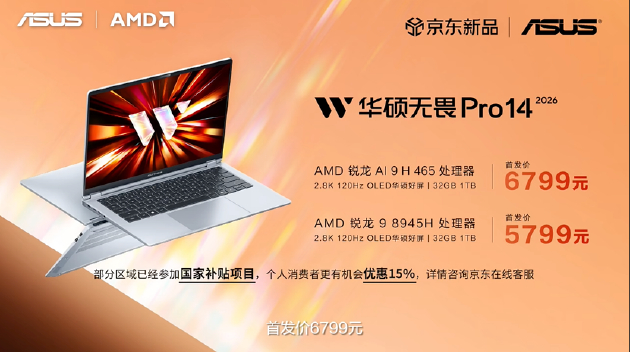 华硕发布2026 AMD锐龙AI PC全能本产品阵容:五款AI PC亮相