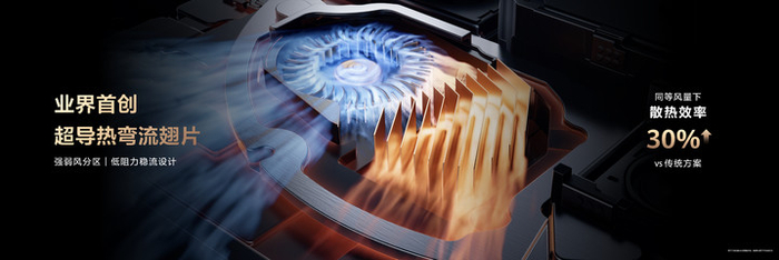 相比业界方案,同等风量下,华为风驰模组的散热效率提升了约 30%,成功树立了主动散热性能的新标杆。